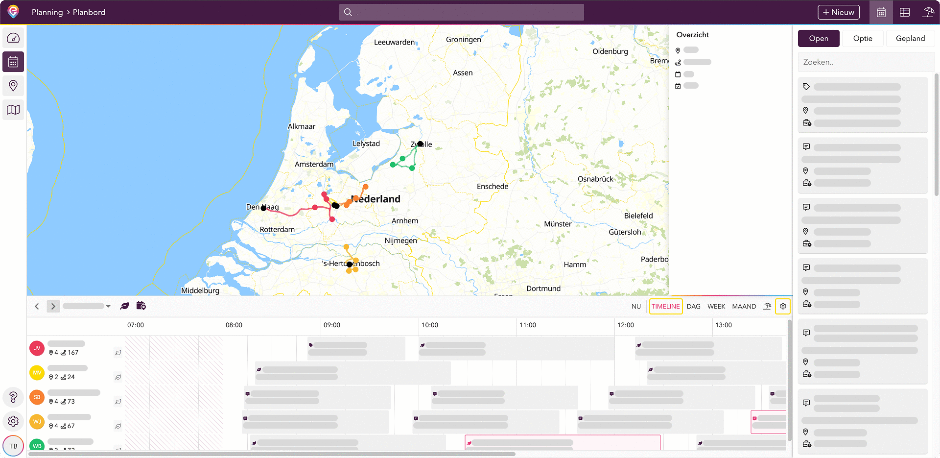 Op het planbord kun je voor een specifieke dag de planning optimaliseren. Dit is vooral handig wanneer je planning onverhoopt is gewijzigd door bijvoorbeeld afzeggingen van klanten.