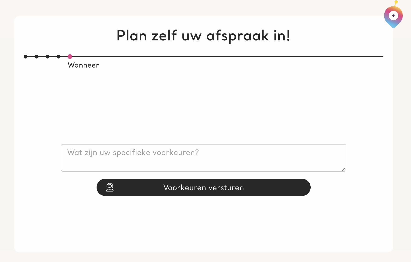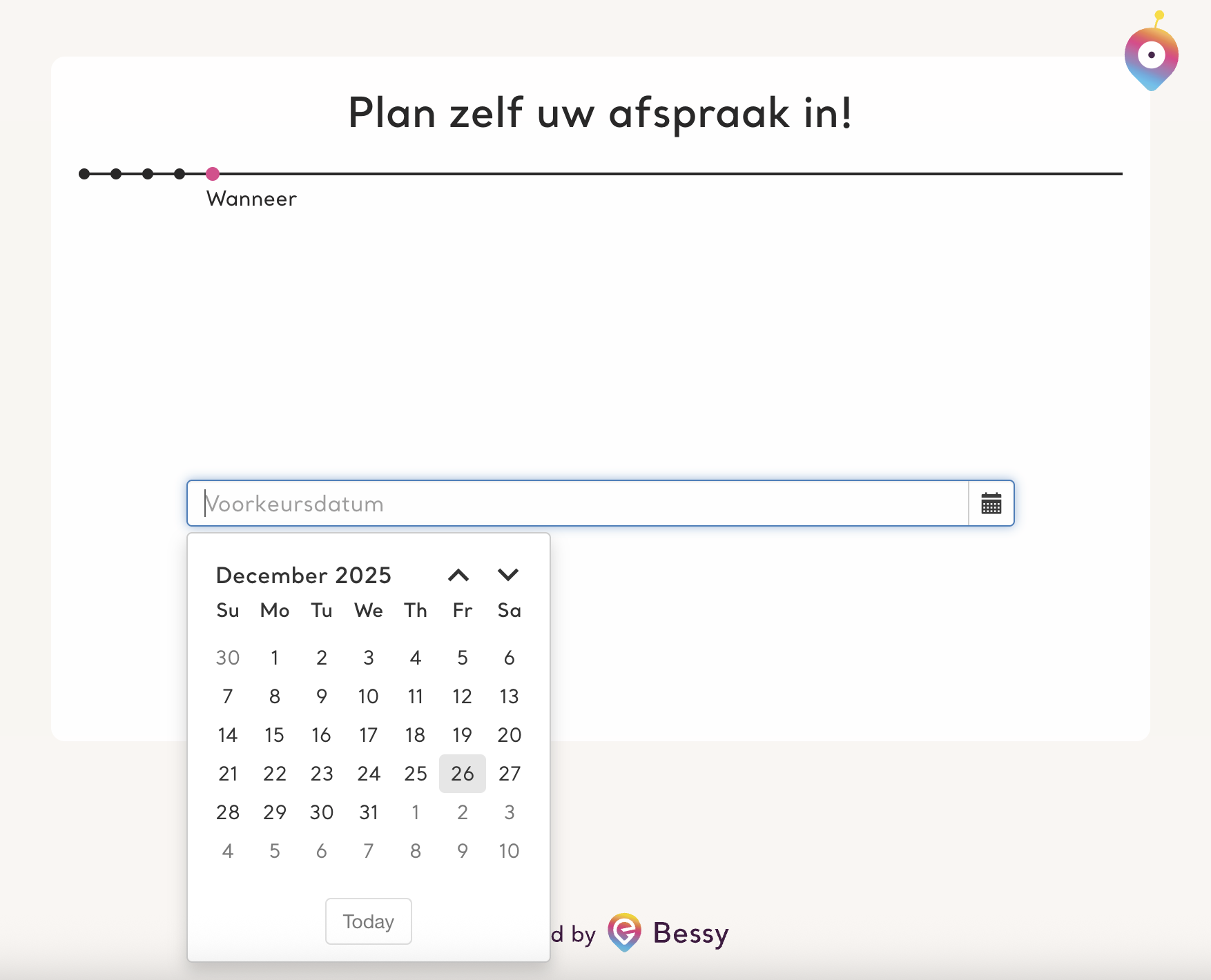 Om de klant echt volledige vrijheid te geven in het bepalen van de afspraak, kun je de mogelijkheid geven om zelf een voorkeursdatum te selecteren. Als de eerste opties niet uitkomen, kunnen ze vervolgens zelf in een kalender aangeven op/rond welke datum ze afspraak opties willen genereren.